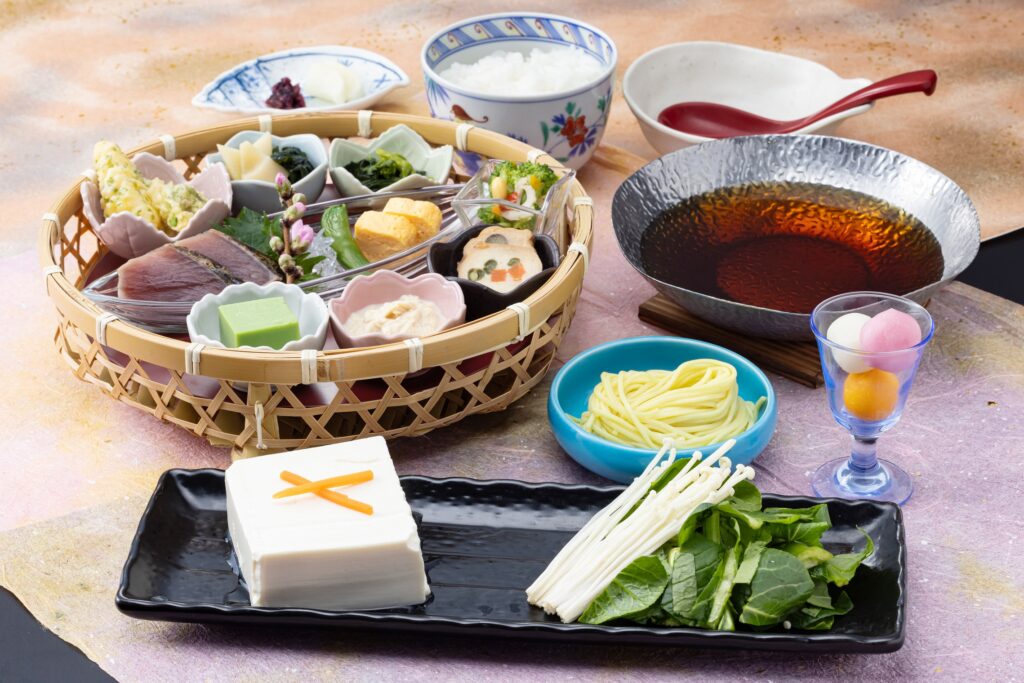 嵐山でいただく花籠御膳で、春の味覚をお楽しみ下さい。